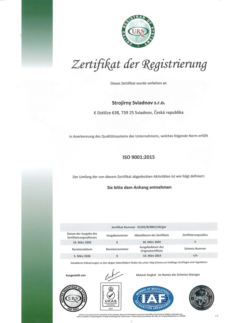 Wir sind für die Produktion von Schienenfahrzeugen der Tschechischen Eisenbahnen, der Deutschen Bahn und anderer europäischer Betreiber zertifiziert.